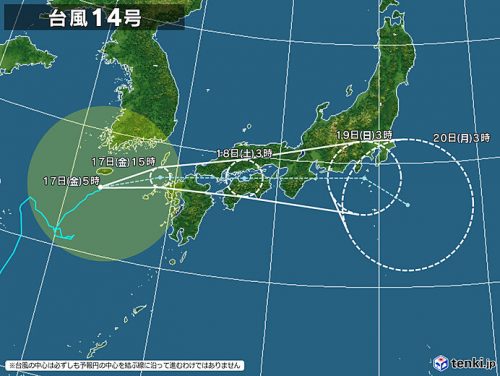 台風14号進路 関東. 台風14号 明日午後にも上陸のおそれ 進路の九州から関東は大荒れに. 台風14号 伊豆諸島あすにかけて警戒 次第に進路を南へ 関東では北風. 台風14号夕方に西日本に上陸へ東京など関東も18日は暴風や大雨に警戒 明日18日土になると影響は東日本や北日本にも拡大し沿岸部を.